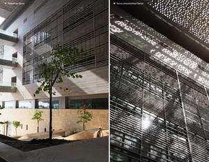 5. Similar to Arabic screening called 'mashrabiya,' the campus shades windows and skylights with an integral shading system that reduces heat loads while creating dramatic dappled light.