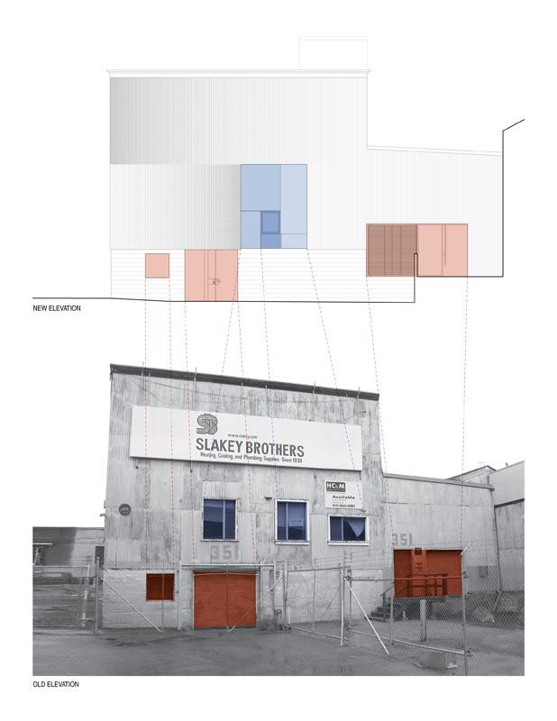 Development Density: The project maximizes developable area on site, continuing San Francisco’s dense fabric. Formerly underutilized as a plumbing supply warehouse, the new office and restaurant programs serve to activate the site both during the day and at night.