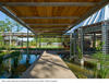 The architecture responds to both the manmade and natural environments of Shangri La. The visitor center, which surrounds a wetlands demonstration garden, is the gateway to the historic ornamental gardens. It takes its cues from the brick, glass, and steel greenhouses built in the early 1920s, which form one edge of the complex. Circulation is outdoors, often under wide canopies that protect from sun and rain. The structures in the natural areas—the nature discovery lab and pavilion, outdoor classrooms, bird blind, and boat house—were designed for minimal impact, floating above the land on helical pier foundations and powered by photovoltaic panels.