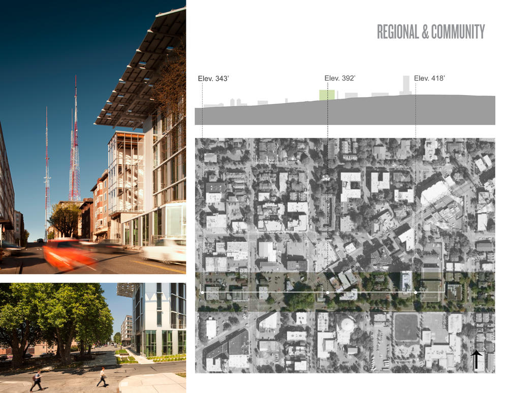 The location was chosen for its highly visible and accessible site, in a predominantly residential neighborhood striving for economic and commercial development. The building now anchors its community as a catalyst for values-based growth. An adjacent underutilized park was revitalized into a vibrant public space, and an improved corner pedestrian crossing serves nearby retail businesses, schools, and churches. No onsite parking is provided and incentives to alternative transit include secure bicycle parking, shower and locker facilities, as well as subsidies for commuters who bus, bike or walk to work.