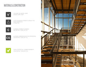 Materials and physical construction of the Bullitt Center adheres to the ambitious environmental guidelines of the Living Building Challenge requiring building elements with the lowest possible embodied energy to be sourced as close to the site as possible and absent of prohibited red list toxins.