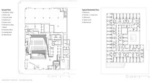 Programmatic flexibility is at the core of the University Center's design. Flexible spaces enable The New School to embrace experimentation and innovation by re-configuring rooms to meet emergent programmatic needs. Flexible zones are created within the floor plate of the academic floors allowing changes to lighting, MEP, and power distribution infrastructure to be made as easily as possible. The floor-to-floor heights on these floors were also designed to accommodate office or commercial uses, should a future change in program be desirable. Throughout the building, storage closets are accessed from the corridors, allowing the use of the classrooms to remain flexible. Additionally, the 800-seat auditorium on the ground floor can be re-configured to allow for a wide range of uses. Designed to accommodate different sizes of lectures, as well as fashion shows, dance, and amplified music, the front of the room can be reconfigured to allow for different stage depths. Extendable seating is incorporated into the back wall for large crowds to reach maximum seat counts. During normal school hours, two sets of movable walls turn these rooms into classrooms, which can be used simultaneously with a smaller 500-seat lecture hall.