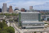Located halfway between both OHSU’s and PSU’s main campuses, this new campus is designed to be highly transit-oriented. The site is currently well-served by a streetcar line, bus lines, bike paths, a pedestrian path and the nearby aerial tram linking it to OHSU’s main campus. There are five transit stops within a quarter mile radius of campus, with two located immediately adjacent to building entrances. Beginning in the fall of 2015, the site will become a hub for light rail users when the city’s newest bridge and light rail line open service across the Willamette River – instantly linking CLSB to Portland’s east side.