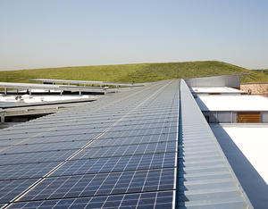The key environmental issues were related to reducing energy consumption while capturing energy available on site. In San Diego County's temperate climate, this primarily meant capturing sunlight for daylighting and power. The design reflects these goals by arranging south-facing roofs for placement of photovoltaics and breaking the building into smaller parts with internal courtyards.