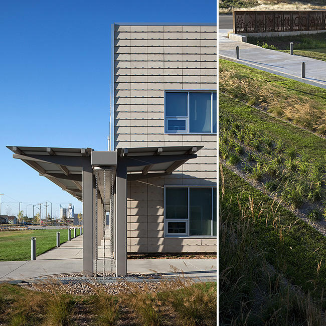 The site design for the school combines restoration of habitat with an infusion of native landscaping. A series of bioswales, constructed wetlands, restored wetlands, and walking trails re-create natural areas that also process storm water. This environment reconnects students, staff, and visitors with vital ecosystems while protecting the land from erosion. It also creates a natural habitat for native species.
