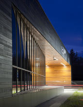 Re-Used Ceder Siding Cut-Offs - Photo Credit: Paul CrosbyAs a LEED Gold Certified facility, enhanced commissioning optimized the HVAC performance, reducing the building’s energy demand. Ground coupled heat exchange (geothermal) heating and cooling was utilized to reduce overall energy consumption of the entire facility and take advantage of the site’s wet soil conditions. This heating source was paired with in-floor radiant heat to minimize the heating load but maximize the comfort of officers and visitors within the facility.