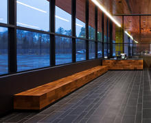 Recycled and renewable materials where used throughout the facility. The exterior envelope which is wrapped in sustainably harvested cedar siding and the cut-offs from the exterior were saved and reused as the finish surface of the interior walls and millwork resulting in minimal waste of materials.
