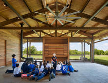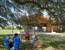 Local ranchers hold monthly meetings at the education center and find comfort and familiarity in the simple execution of the pavilion’s vernacular form with large overhangs and deep and inviting porches. Civic and school students frequently travel by bus to visit the education center for field days learning about watershed health, wildlife, and native plants. Kids on the Land, a program sponsored by the foundation, uses an integrated Science, Technology, Engineering, and Mathematics approach to teach children about the region where they live. The program uses the Josey Pavilion to help connect children to the land and encourage them to live a more sustainable future.