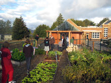 Students (left) preparing their vegetables for the Gorge Grown Farmer's Market (right) - Photo Credit: Opsis ArchitectureThe school sits at the heart of Hood River, a small community in the Columbia River Gorge, and serves as a host to a variety of community events. The interface between the building and its environmental and cultural landscape is particularly important for the curriculum at Hood River Middle School. The new music room will not only provide a new home for the school’s music classes but will also be available for other community arts groups. The students’ growing and harvesting efforts in the greenhouse and garden serve as a venue to bring the larger community to the school campus; every Thursday, students participate in the Gorge Grown Farmer’s Market hosted at the school site. A new outdoor amphitheater overlooking the greenhouse is also accessible to the public in addition to serving as an outdoor classroom project.