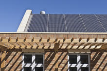 A 35 kilowatt photovoltaic system adorns the roof - Photo Credit: Michael MathersAchieving a net-zero-energy building began with well-insulated walls, triple-glazed windows and careful detailing to prevent thermal bridging. Concrete walls and slab provide excellent thermal mass buffering against Hood River’s seasonal temperature swings. The monolithic nature of the walls, along with the tight envelope, drastically reduces air infiltration and allows the space to be conditioned by the geothermal heating system. In addition, a heat-exchange system and a radiant slab increase the efficiency of the building, reducing reliance on imported energy.