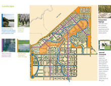 Long Range Plan at Buildout - Photo Credit: UC MercedThe plan is based on a compact orthogonal grid that evokes classic Central Valley downtowns, promotes efficient land use, and is oriented to maximize rooftop solar collection. Within the grid, landscape design applies a low-water typology that is contextual and includes tree and shrub selections intentionally designed to attract native birds and other wildlife.